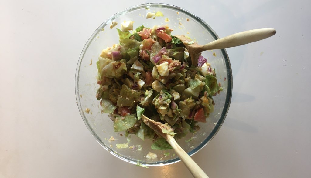 And here’s a shot of something healthier. It’s a tuna salad containing six ingredients that I made earlier.