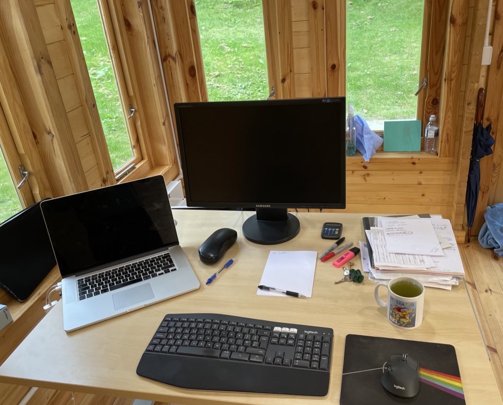 Here is a shot of my desk. My summerhouse cum office is proving to be a tranquil working environment. I have written 1.5 books so far this year. Of course rewriting may be necessary.